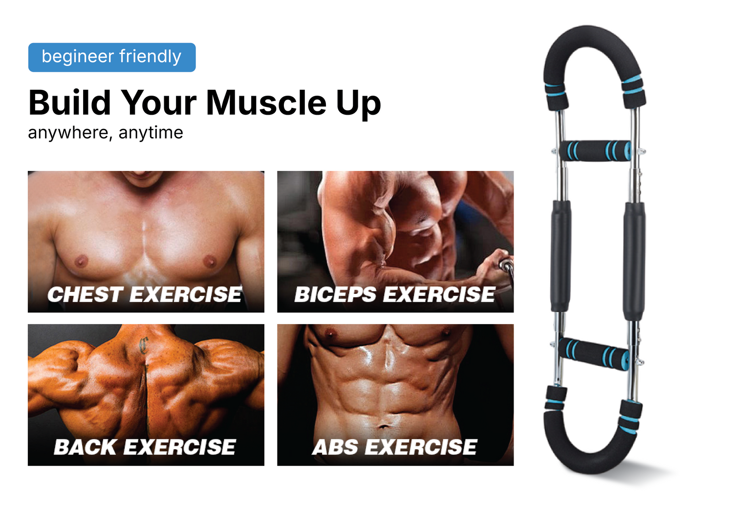 Train your arms, chest, shoulders, and back with every twist. This trainer is designed to help you build strength, shape, and confidence — all from the comfort of your home.